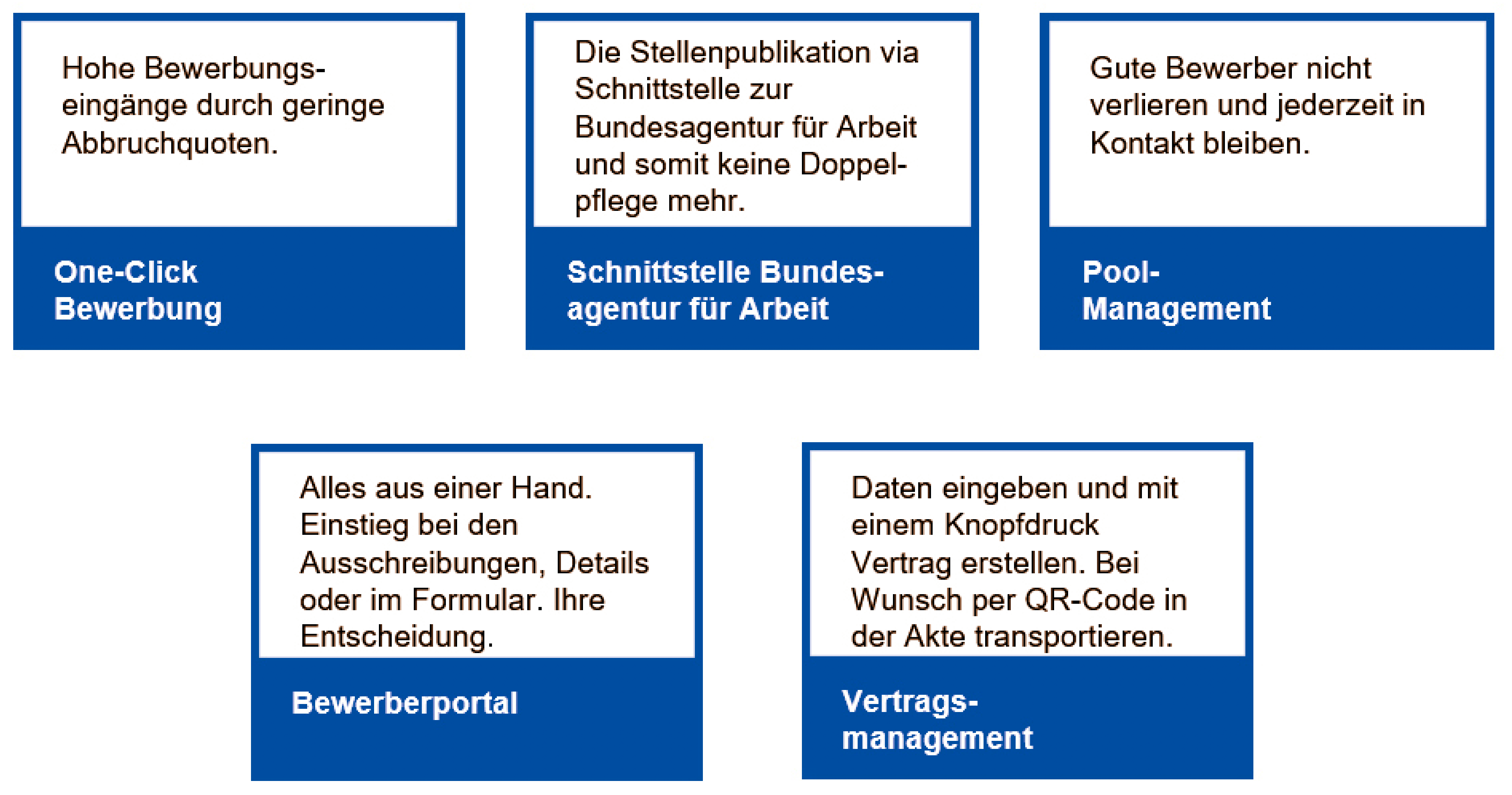 - Qualitäts- und Effizienzsteigerung durch automatisierte Prozesse, digitale Bewerberakten und transparente Bewerberverfahren.